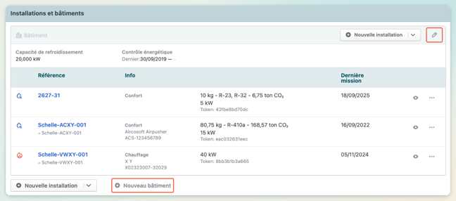 Affecter des installations à un bâtiment