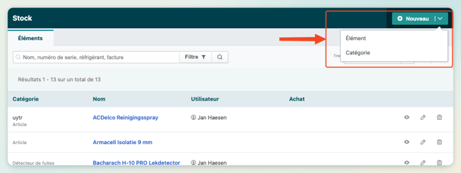 Cliquez sur Nouvel élément dans le menu Inventaire.