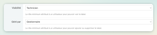 Les rôles qui ne peuvent pas voir un label spécifique ne peuvent pas non plus l’ajouter ou le retirer de l’élément.