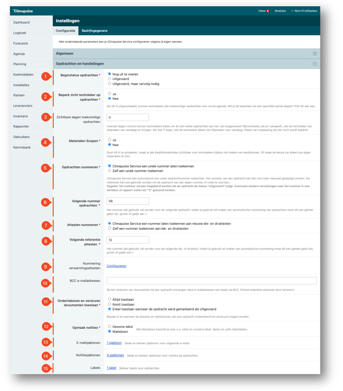 Climapulse kan automatisch een uniek opdrachtnummer toekennen. Het nummer van een opdracht kan dan niet meer manueel gewijzigd worden. De referentie kan wel gebruikt worden om de opdracht van een eigen nummer of code te voorzien