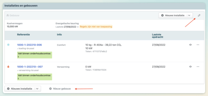 Om een installatie toe te kennen aan een gebouw ga je als volgt te werk: