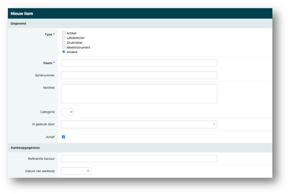 4. Koppeling aan Categorieën: Koppel elk item in de inventaris aan een specifieke categorie voor een georganiseerde weergave. Dit maakt het eenvoudiger om apparaten te zoeken en beheren binnen specifieke groepen zoals meetinstrumenten, lekdetectoren, en veiligheidsapparatuur.