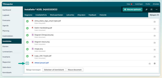 Wanneer je bijlagen koppelt aan een klant, installatie, of locatie, kun je deze eenvoudig delen met de klant via het klantenportaal.