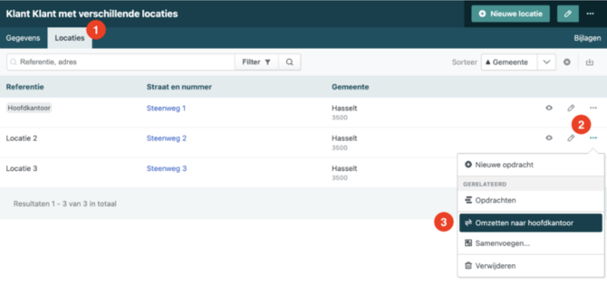 Als je vooral particuliere klanten bedient zal het eerder uitzonderlijk voorvallen, maar in andere gevallen komt de mogelijkheid om verschillende locaties voor een klant te definiëren goed van pas.