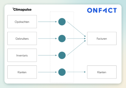De koppeling tussen Climapulse en onFact voorziet een automatische synchronisatie van gegevens. Als jouw opdracht in Climapulse afgewerkt is, kan je deze omzetten in een factuur in onFact. Van daaruit kan de factuur verzonden en verder opgevolgd worden. Zo heb je een overzicht over al je klanten en facturen, en kan je de zaken direct opvolgen.