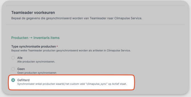 Kan data gesynchroniseerd worden van Climapulse Service naar Teamleader?