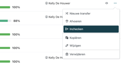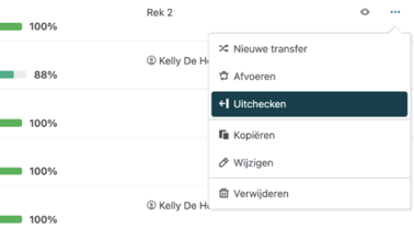 Een fles die op een locatie staat of toegekend is aan iemand anders kan een technici uitgechecken. De fles wordt dan toegekend aan hem. Klik hiervoor op de 3 bolletjes (opties) naast de fles.